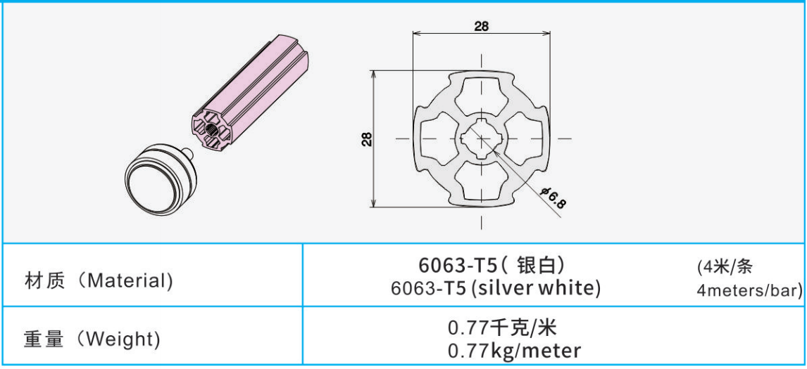 材質:6063-T5(銀白)(4米/條)