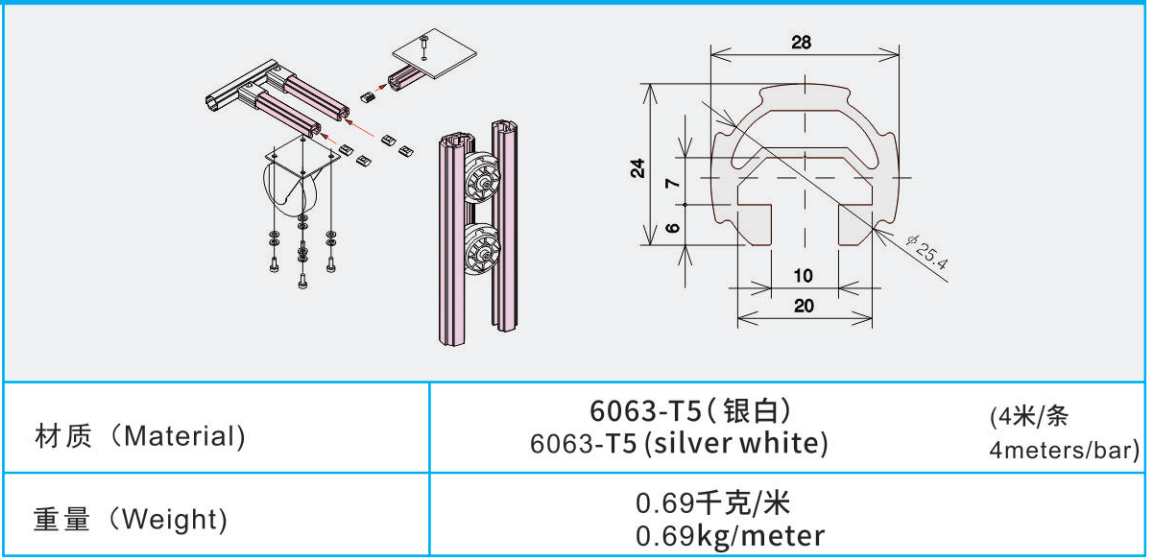 線棒材質:6063-T5(銀白)(4米/條)