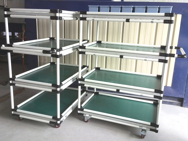 精益管周轉(zhuǎn)車(chē)的安裝步驟和精益管工作臺(tái)的安裝步驟基本上差不多,下面我們給大家介紹一下精益管周轉(zhuǎn)車(chē)的安裝步驟: