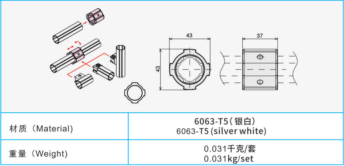 材質(zhì):6063-T5(銀白)