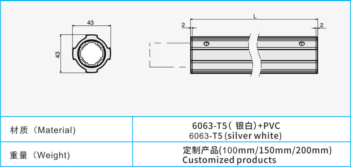材質:6063-T5(銀白)+PVC